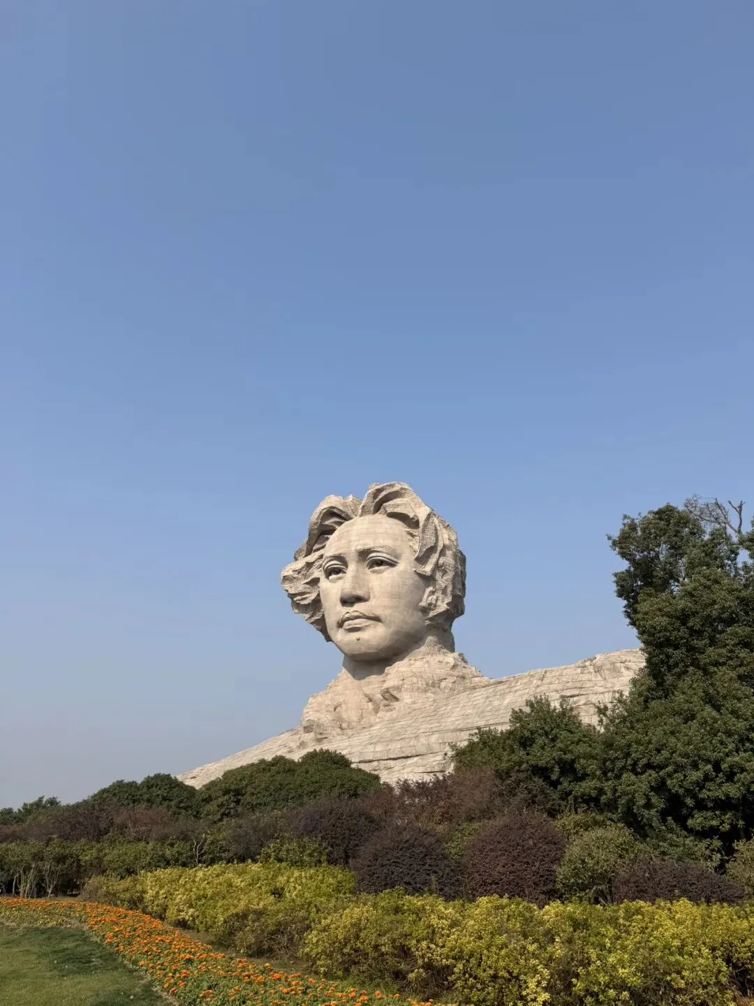 高32米、长83米、宽41米的中国最大毛泽东青年像(半身),以1925年32岁时的毛泽东形象为原型,飘逸长发、深邃目光,象征“心忧天下、谁主沉浮”。