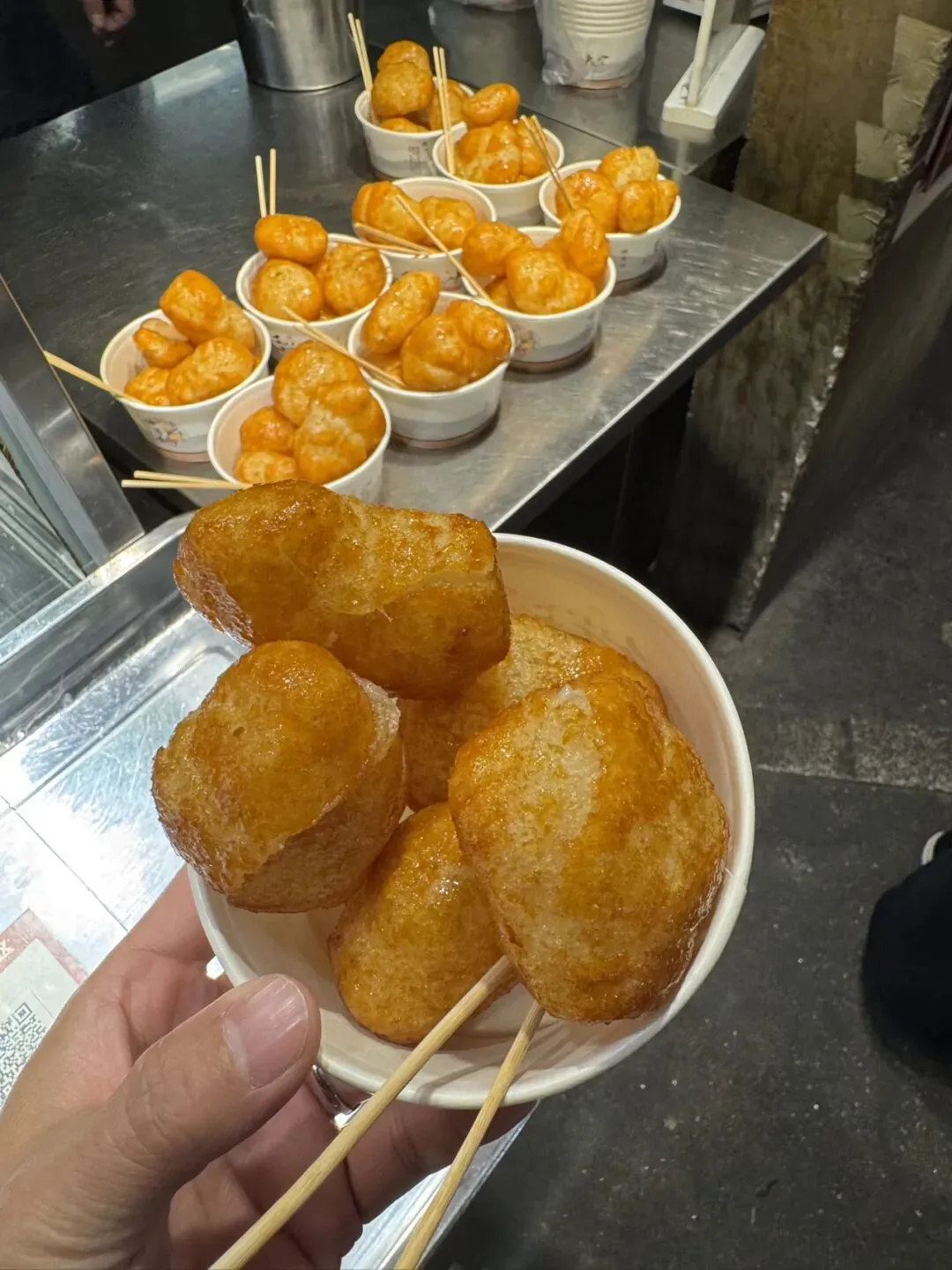 文和友里面的糖油粑粑做法不一样,里面是空心的,口感还可以,正常一般是实心的。