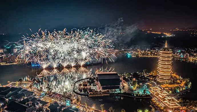 沉浸式唐风乐园,能看黑石号特技秀、非遗打铁花,还能体验陶艺DIY,夜游灯光超出片,情侣约会、汉服打卡都很合适,双人同行氛围感拉满。