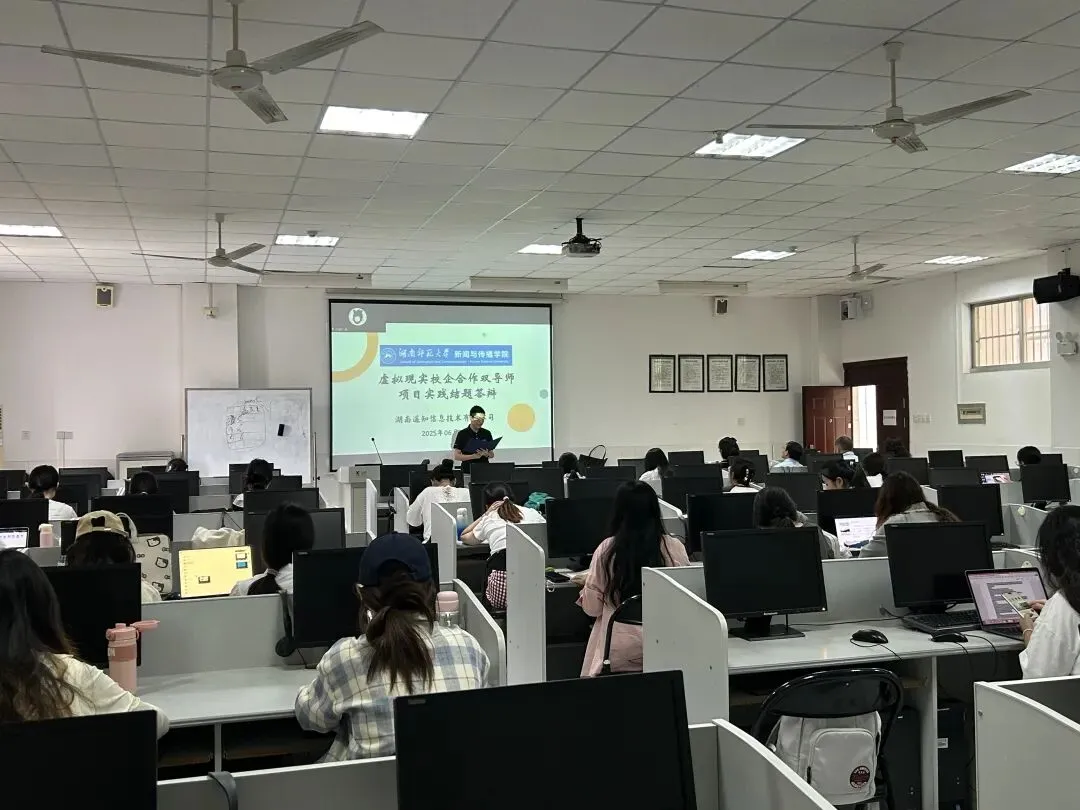 2025年5-6月,湖南遥知先后与长沙师范学院美术与设计学院、湖南师范大学新闻传播学院联合开展"双导师授课"结课答辩仪式,标志着校企双方在虚拟现实人才培养领域取得新突破。