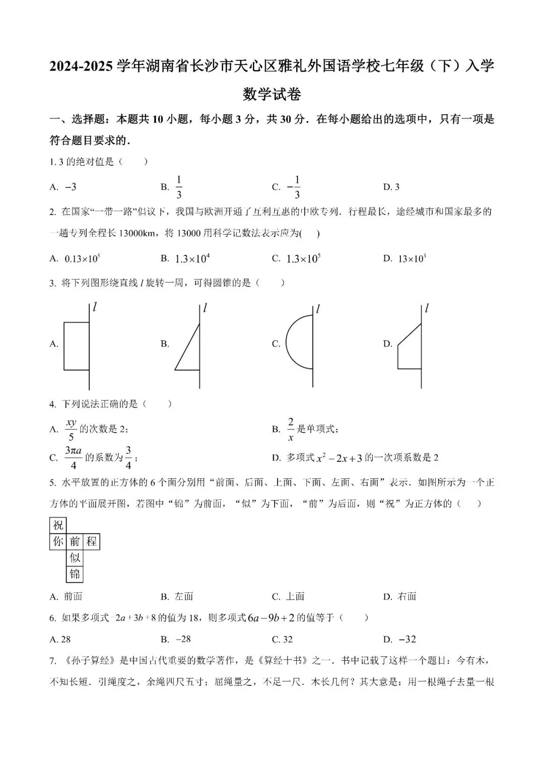 【真题汇总】——2024年长沙九年级下册入学检测数学试卷+参考答案(免费领取)