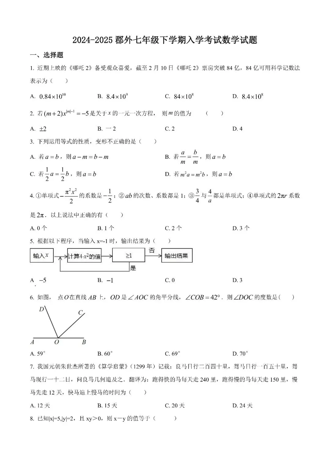 【真题汇总】——2025年长沙八年级下册入学检测试卷+参考答案(免费领取)