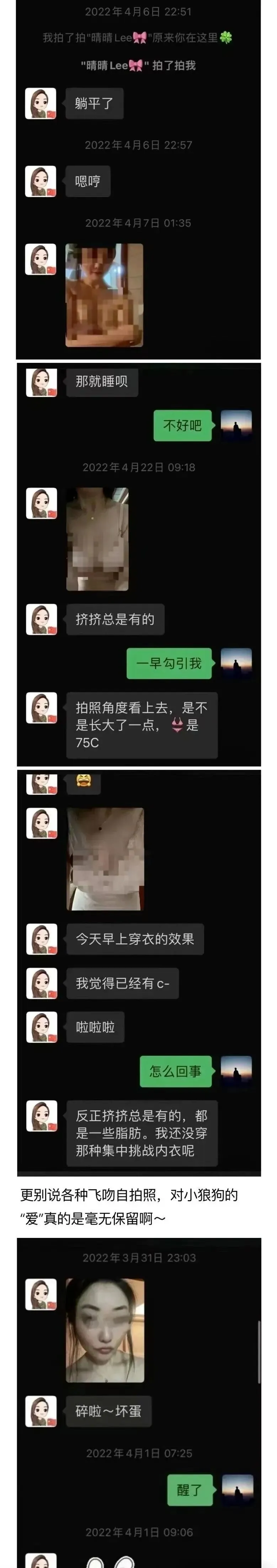 时间跨度近一年时间,2021年12月3日到2022年11月3日,聊天的时间什么时段都有,有早上、中午、下午,还有午夜,聊天内容更是尺度很大,很露骨,还有李局长给情人发的不雅照片。2022年其实李局长43岁,不得不说正是如狼似虎的年纪,和小情人打得火热,两人的聊天话题也极为火爆。