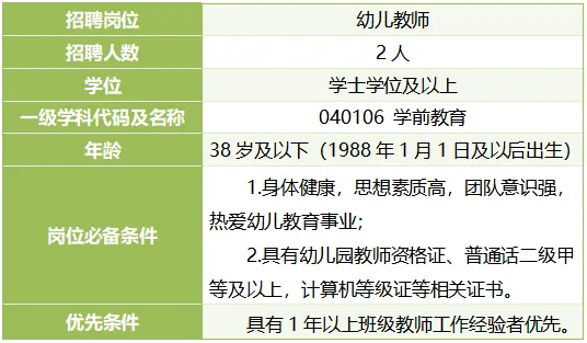 长沙师范学院附属第一幼儿园创办于1951年,是长沙师范学院的见实习中心和重要科研基地,也是湖南省幼教师资的培训基地、“湖南省示范性幼儿园”“湖南省文明卫生单位”“长沙市花园式单位”“长沙市示范性托育机构”。根据《事业单位人事管理条例》(中华人民共和国国务院令652号)和《湖南省事业单位公开招聘人员办法》(湘人社规〔2025〕1号)《长沙师范学院非事业编制一般层次人才招聘工作实施办法》要求,结合幼儿园事业发展规划,面向社会招聘非事业编制教师2名,现将招聘有关事项公告如下: