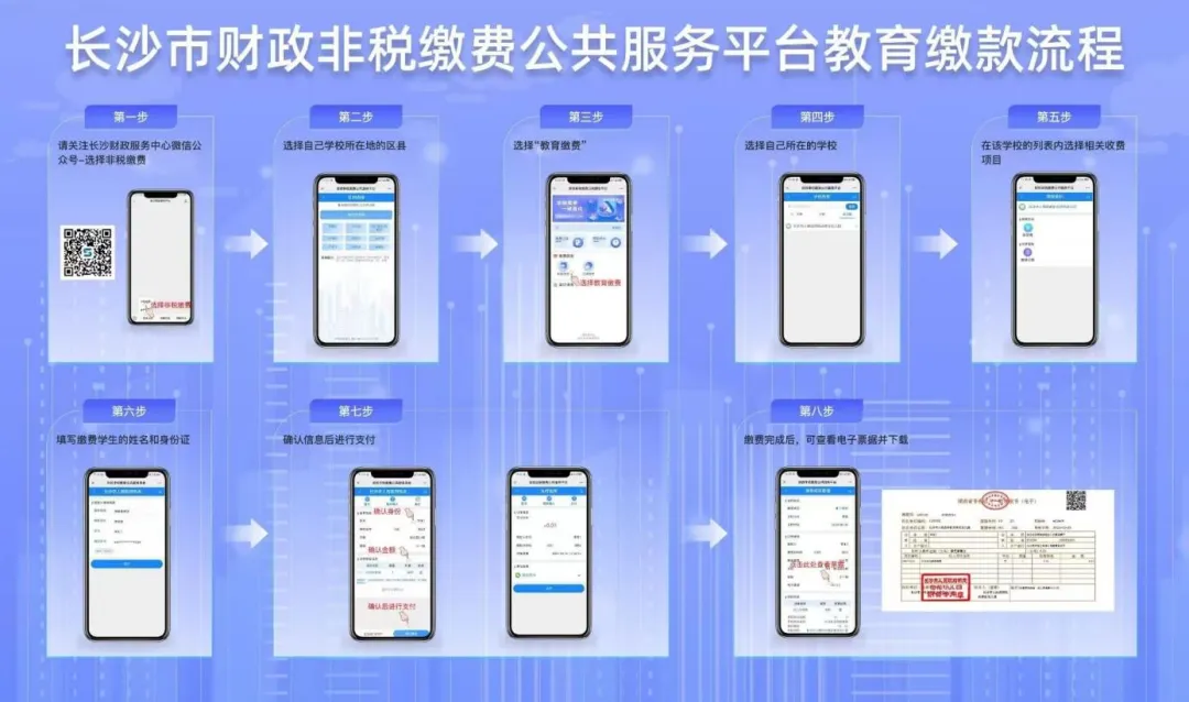 关注“长沙财政服务中心”公众号,进行收伙食费和课后服务费缴费。
