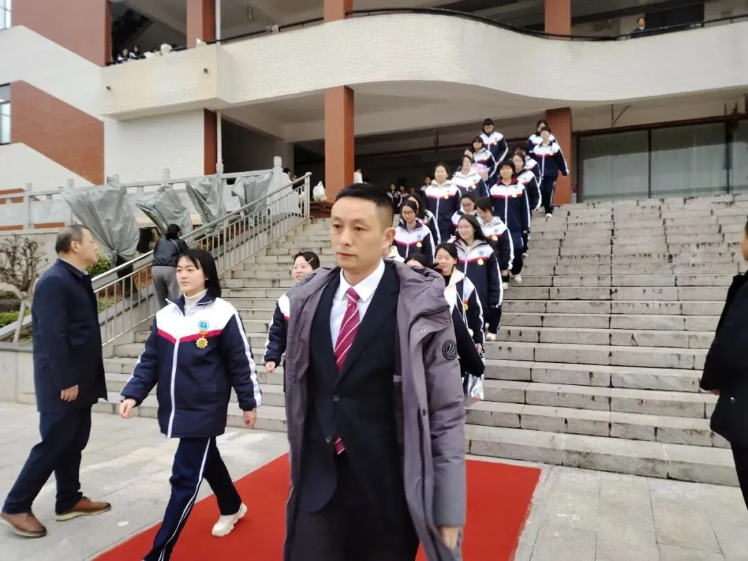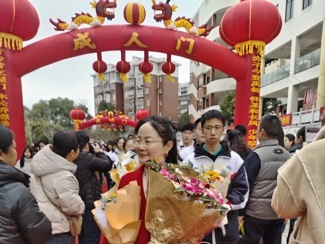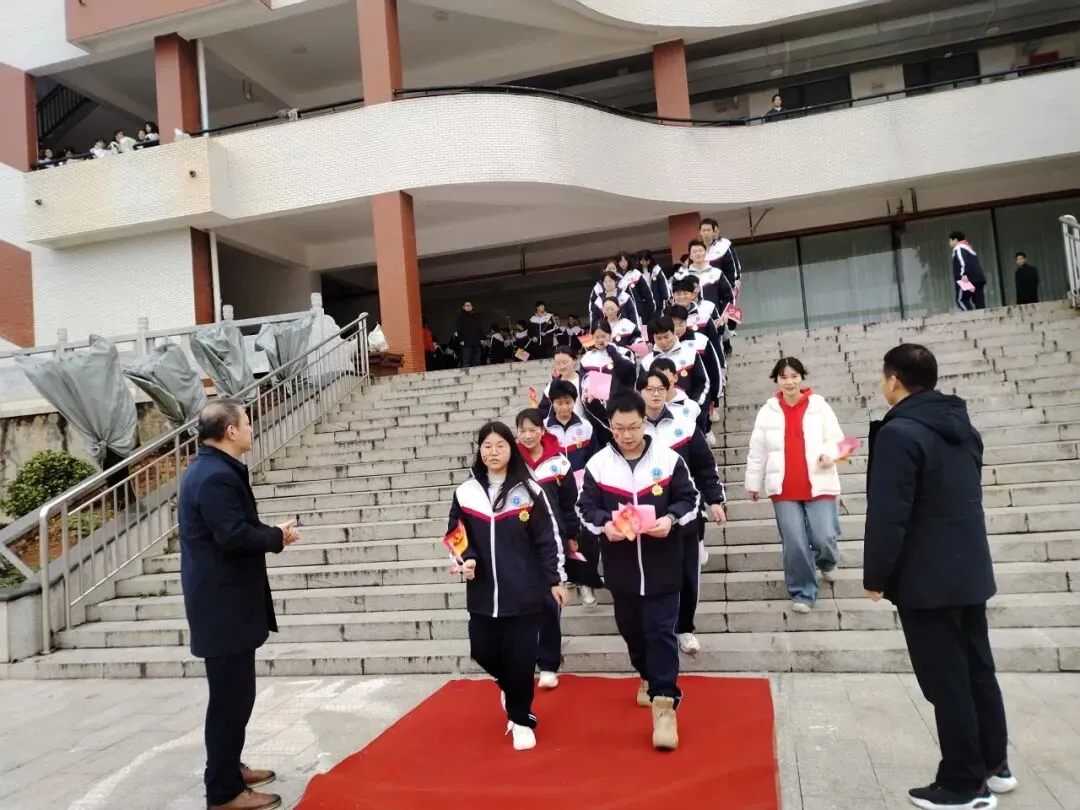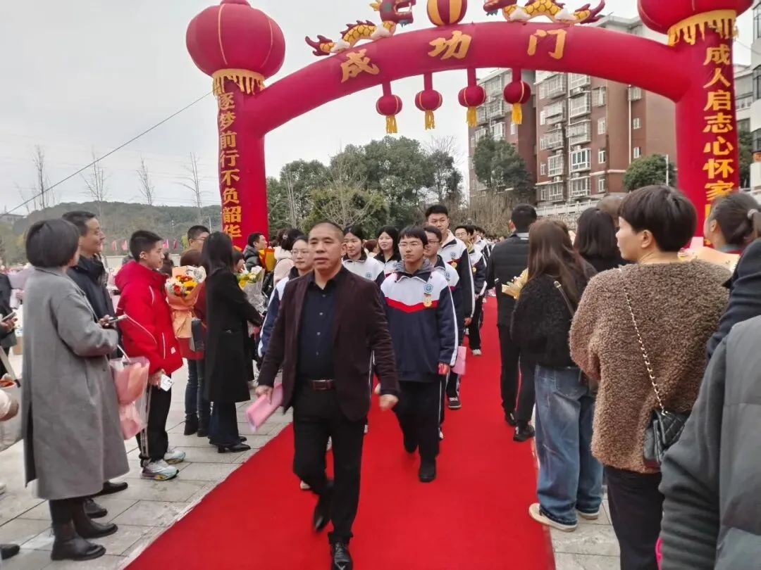 高三学子佩戴专属成人纪念章,精神抖擞、整装待发。在班主任的带领下,各班学子有序列队,踏着红毯、迎着掌声,昂首阔步跨越“成人门”。校领导、老师们伫立两侧,家长们满怀期盼、掌声不断,用最热烈的方式迎接孩子们的成年时刻。