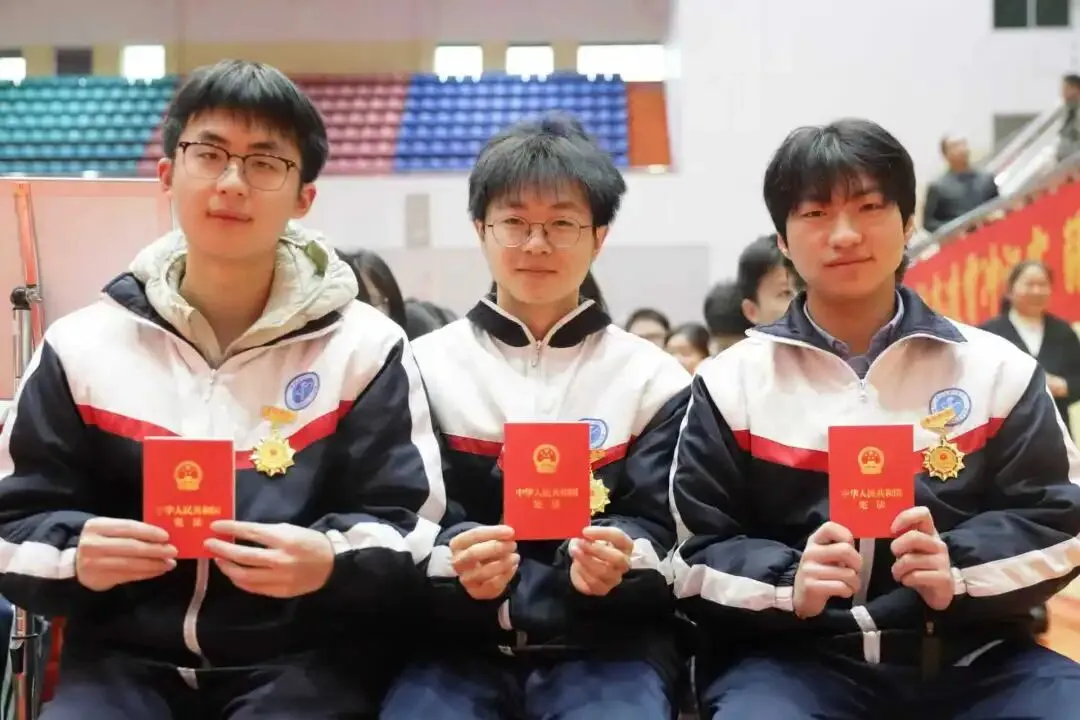 在体育馆入口处,学生科老师们为每一位学子送上《宪法》读本,让法治信仰与责任担当,成为十八岁最厚重的礼物。