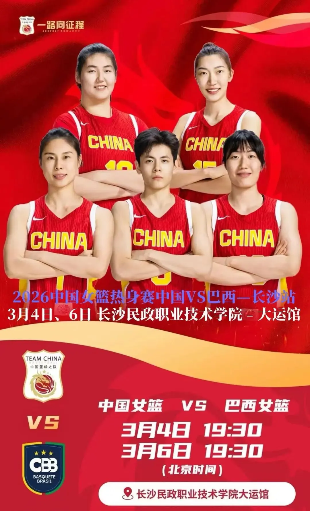 “2026年中国女篮热身赛(中国国家女子篮球队VS巴西国家女子篮球队)”将于2026年3月4日(周三)、3月6日(周五),每天19:00-21:30在长沙民政职业技术学院大运馆举行,现场观众约6400人。为确保活动期间道路交通安全畅通,长沙公安交管支队将采取以下交通管制措施。
