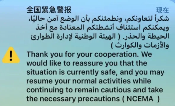 3日,潇湘晨报·晨视频记者持续连线在迪拜工作的湖南长沙籍阿联酋航空工程师程先生,对方表示已经收到解除警报通知,部分区域已恢复正常生产生活秩序,本人安全稳定、坚守岗位并已向家人报平安。