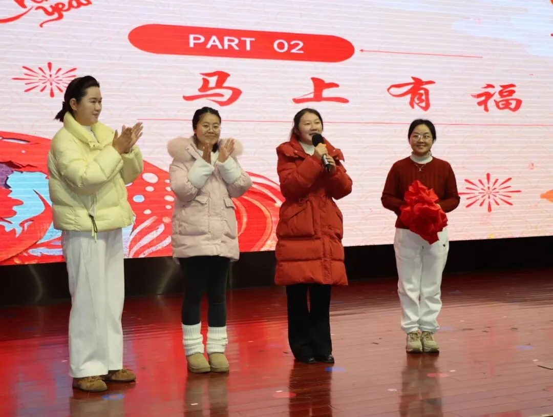 伴随着大屏幕上奔马画面,老师们踊跃参与线上摇奖,三位幸运教师上台领取暖心礼品。