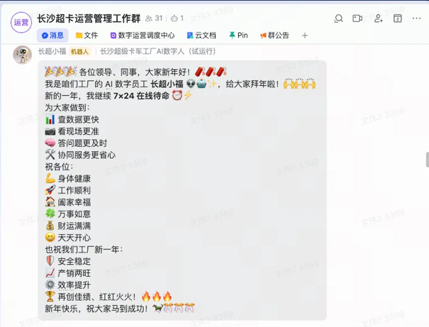 “长超小福”并非传统意义上的问答机器人,而是由流程与数字化部协同长沙超级卡车工厂共同打造的AI数字人。它具备多技能集成能力,能够参与业务协同、执行系统操作、推动任务闭环,是一个真正嵌入流程中的智能体。