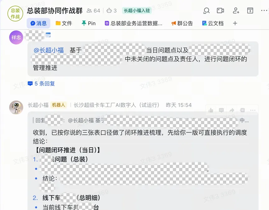 在生产启动、总装协作、班组管理、精益改善等群协同场景中,长超小福实现了常态化协同: