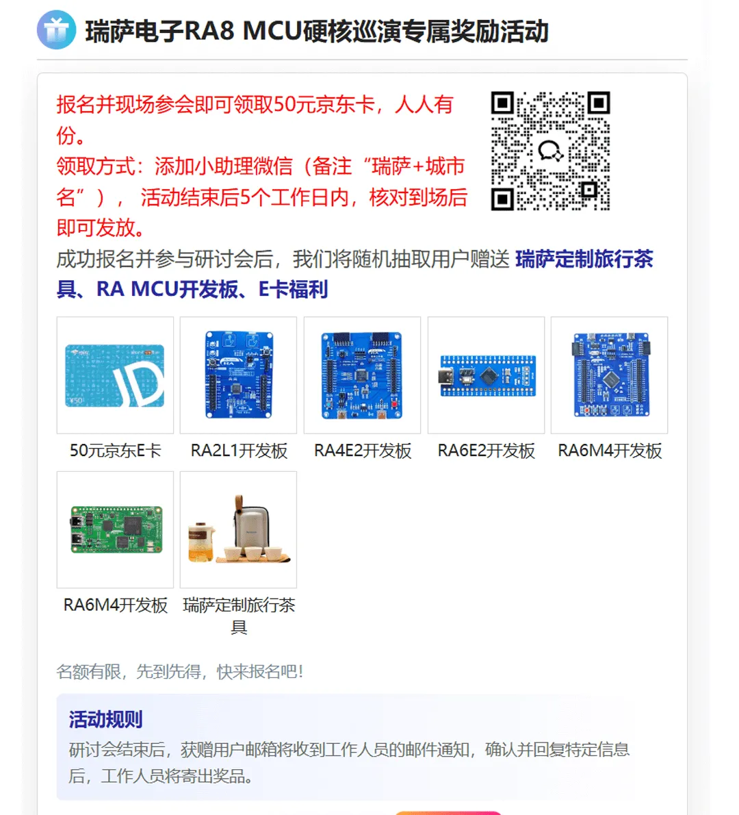 此外,本次巡演将送出海量开发板及实物礼品,点进报名链接选择你所在的城市报名加入吧~!