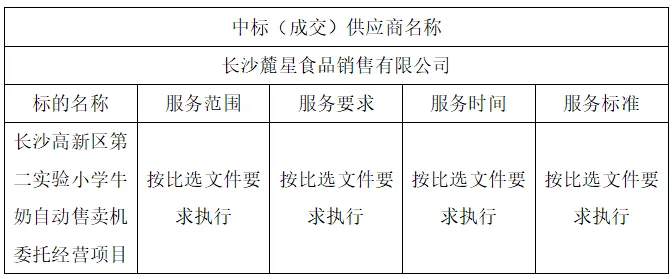 长沙高新区第二实验小学牛奶自动售卖机委托经营项目比选结果公告