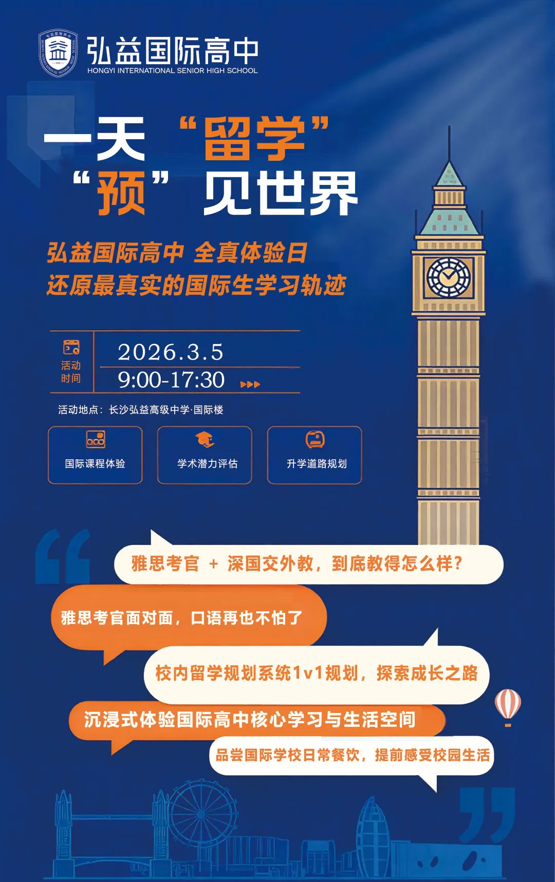 别再只靠想象了!3月5日,长沙弘益国际高中全真体验日,让你和孩子沉浸式体验一天真实的国际学校生活,所有疑问,一次找到答案。