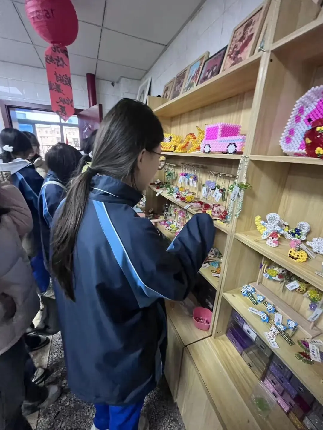手工活动结束后,学子们来到福利院设置的爱心工艺品展台,欣赏残障朋友亲手制作的串珠摆件、丝网花等精美作品。大家被那份坚强、乐观的精神打动,纷纷自愿购买心仪的工艺品,既表达对残障人士劳动成果的肯定,也把一份温暖情谊带回家中延续。