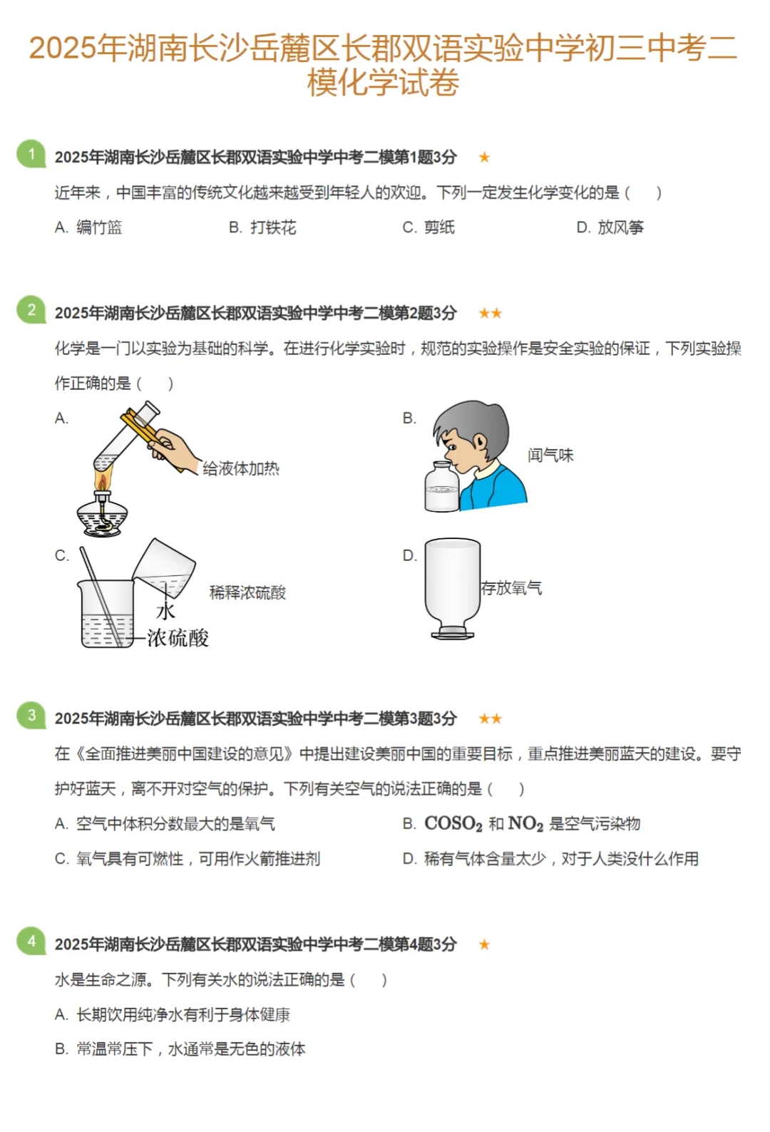 2020-2025学年湖南长沙中考二模化学真题及答案解析
