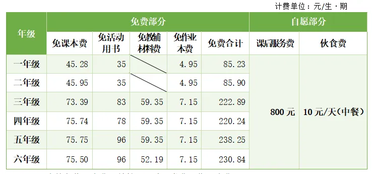 一、本校免收课本费、教辅及活动用书费、作业本费。