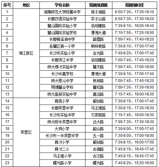根据往年经验,3月6日晚高峰(星期五)拥堵路段主要集中在城区主干道及过江通道。易拥堵路段主要涉及湘府路高架、金星中路、五一大道、晚报大道等36条道路,其中过江通道主要为福元路大桥、银盆岭大桥、橘子洲大桥、猴子石大桥、湘府路大桥。尽量提前30分钟出门,避开7:40—8:30的最拥堵时段。接送孩子时,请选择周边停车场或即停即走区域,严禁在路中间双排停车,避免引发后方大面积拥堵。