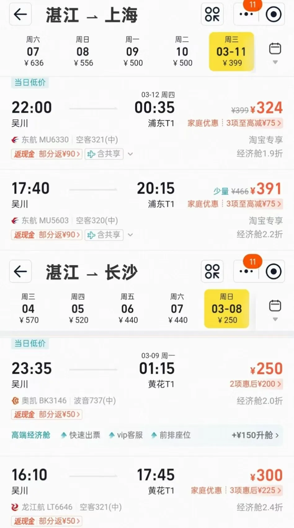 低至240元起!湛江直飞北京、西安、长沙、武汉、南昌等热门城市机票价格大幅回落