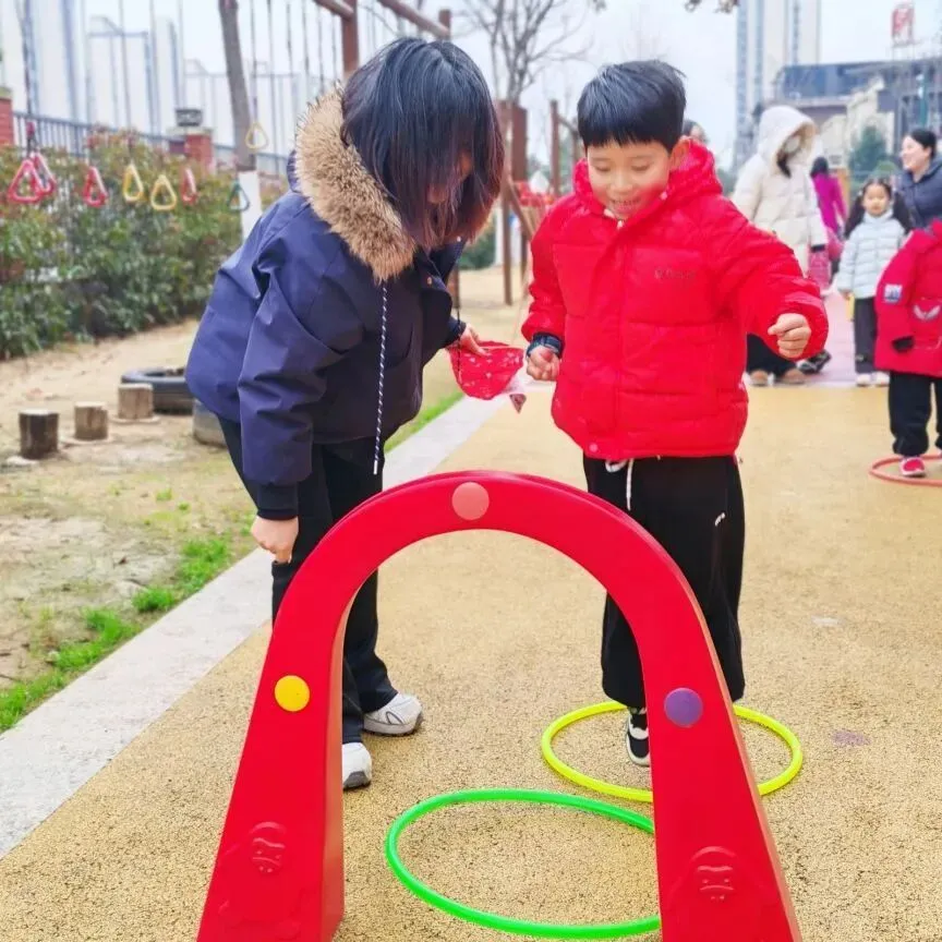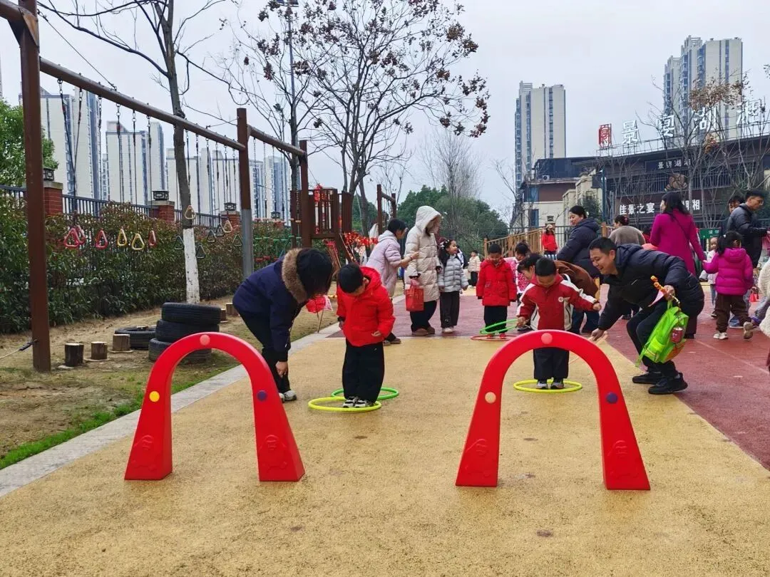 跳一跳,挪一挪,孩子们在跳跃中锻炼了身体协调性,家长在陪伴中感受到孩子成长的每一步。两个圈,一段路,连接起的是亲子之间最温暖的互动时光。