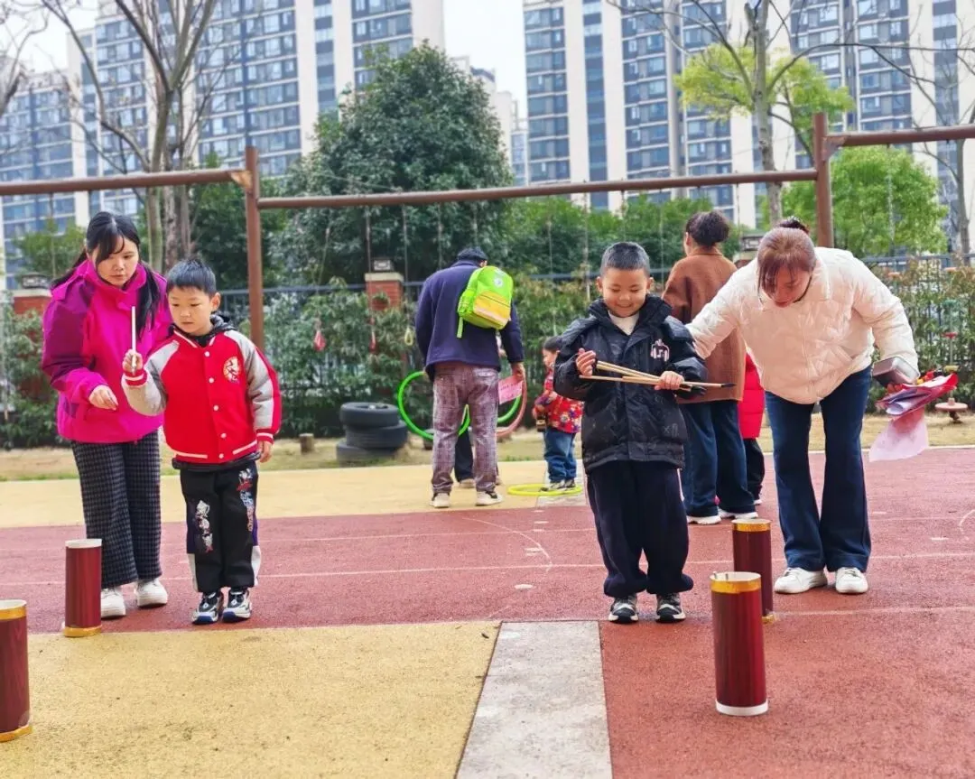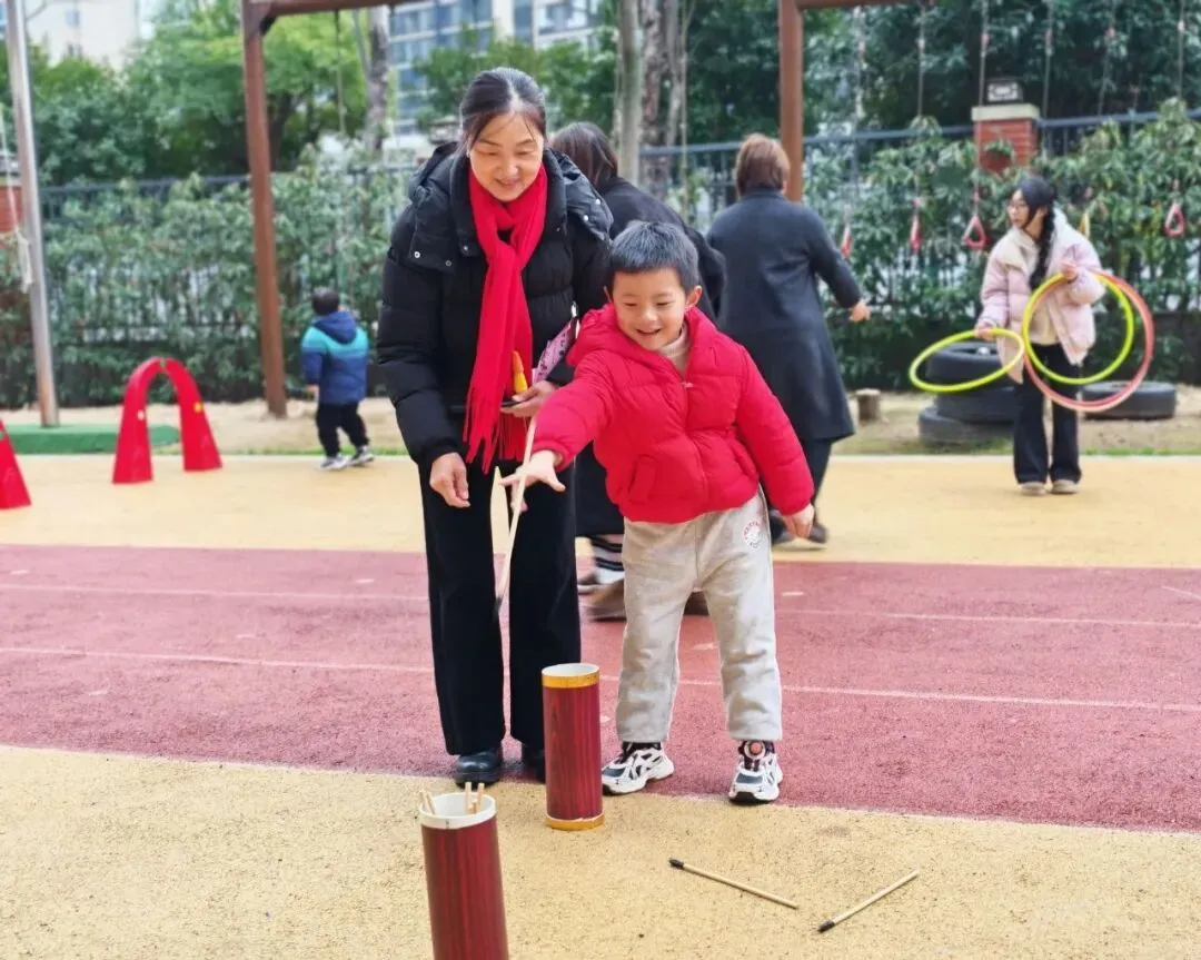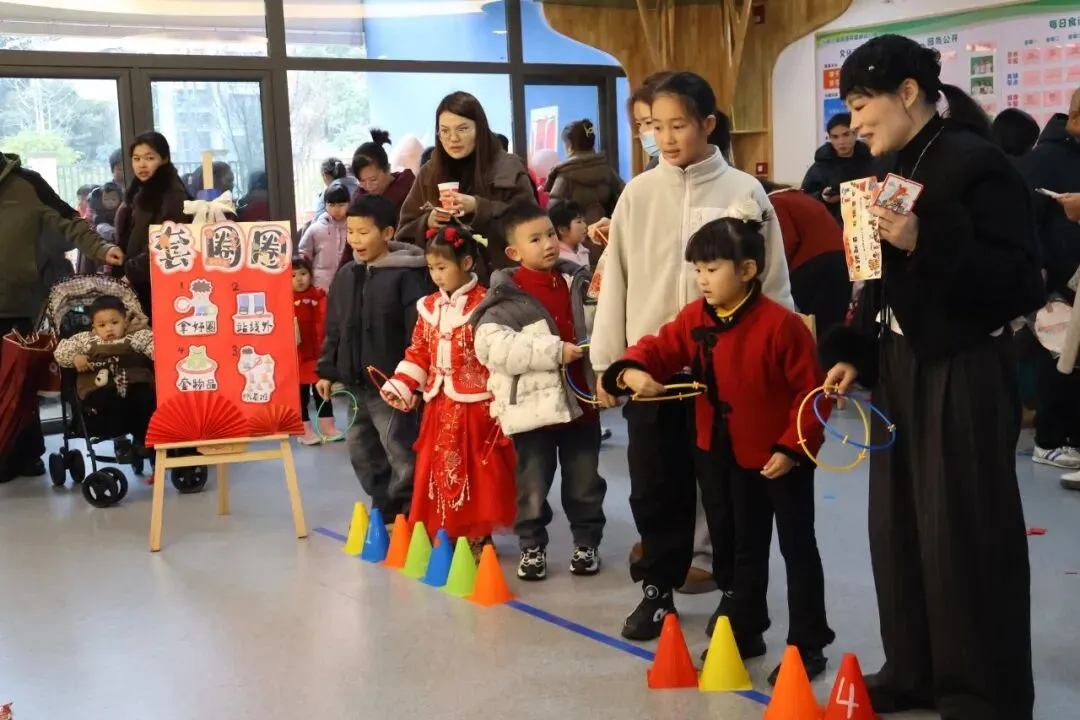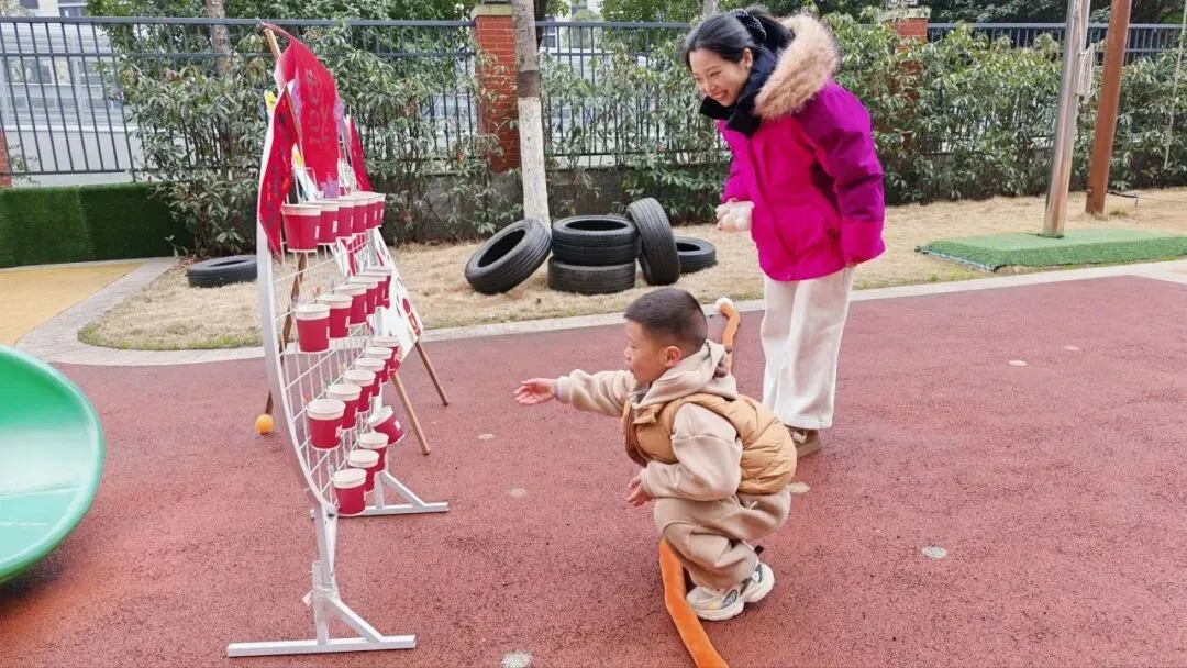 瞄准、投掷、套中!孩子们专注的眼神,家长鼓励的掌声,构成最温馨的画面。