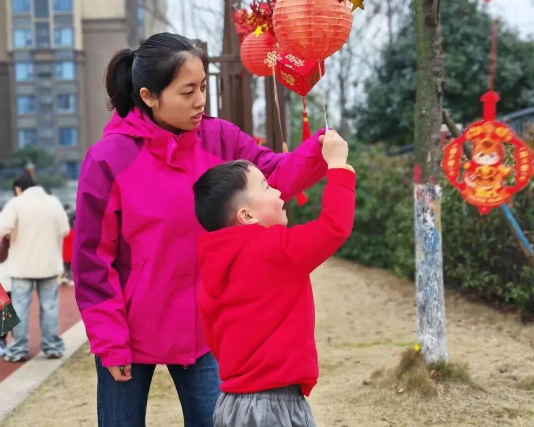 灯笼下悬挂着谜语,孩子们或凝神思考,或欢呼雀跃,猜中谜底的那一刻,笑容比灯笼还亮。