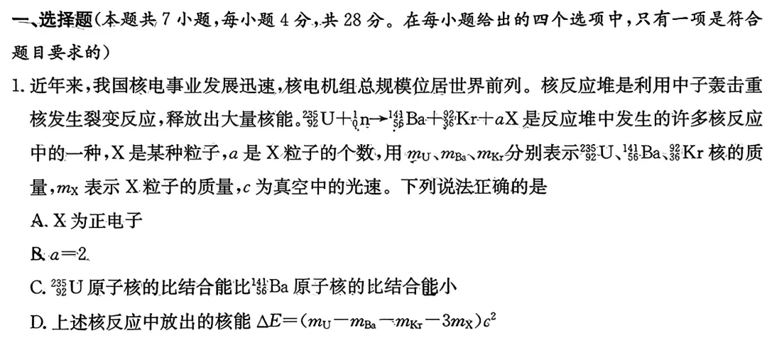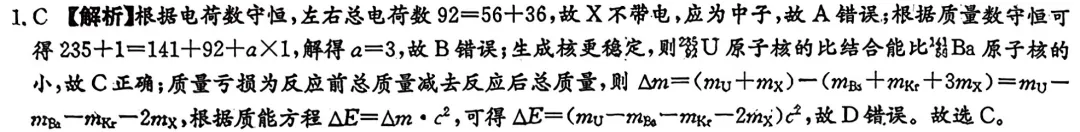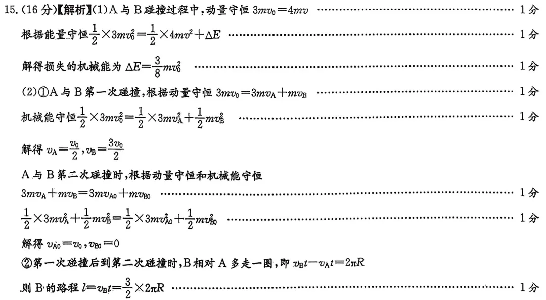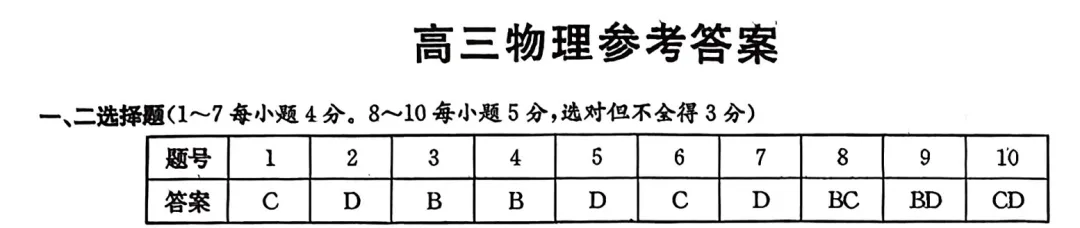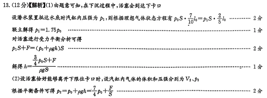 湖南省2026届高三九校联盟第一次联考物理 详细答案