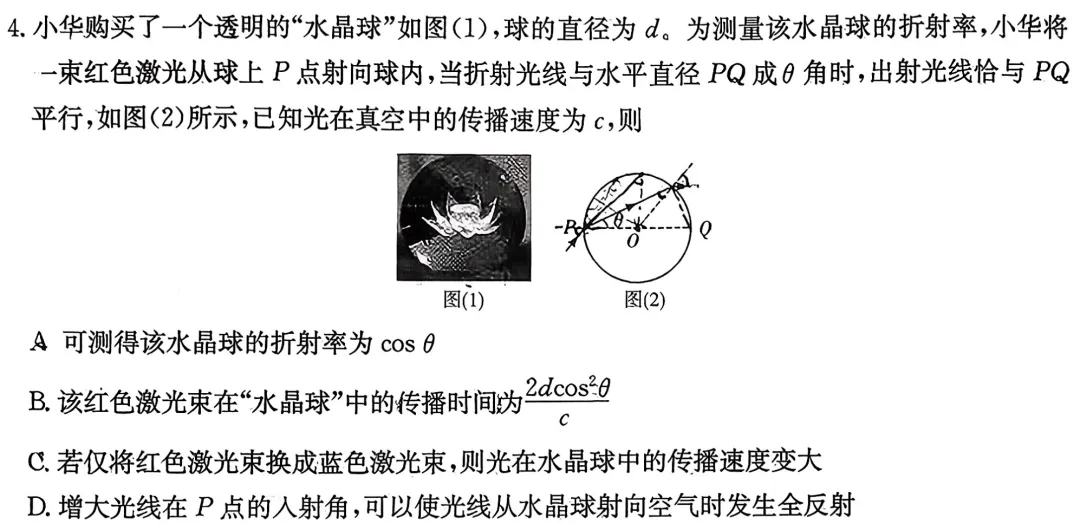 长郡中学2026届高三月考物理试卷(四)及详细答案