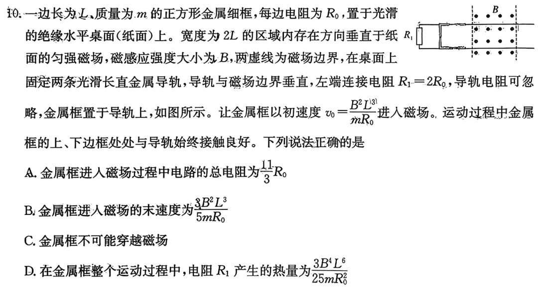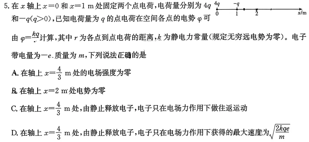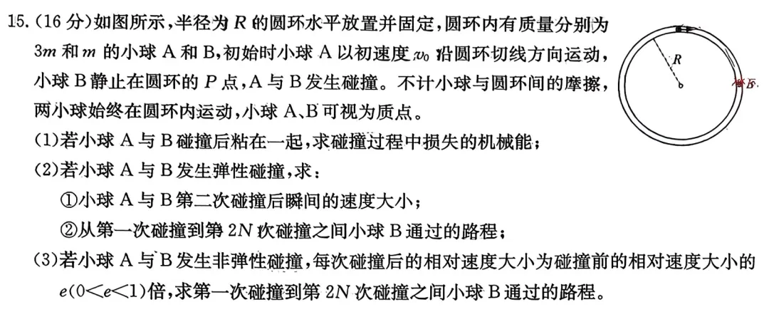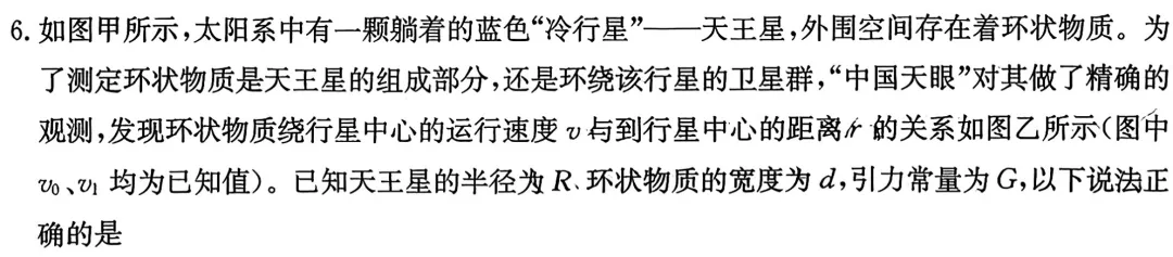 雅礼中学2026届高三月考物理试卷(六)及详细答案