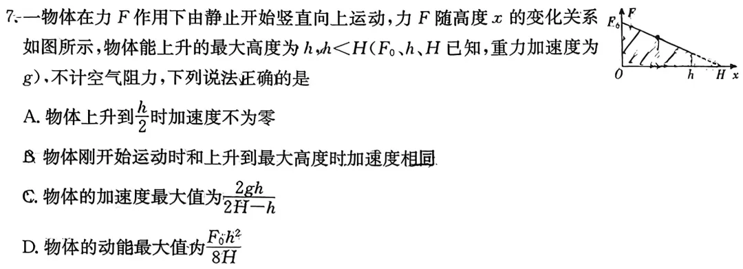 >长沙市一中2026届高三月考物理试卷(七)及详细答案