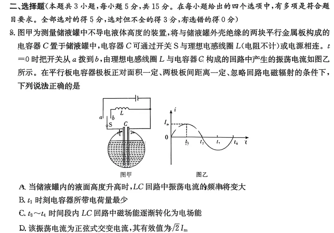 长沙市2026年高三年级模拟考试物理试卷及答案
