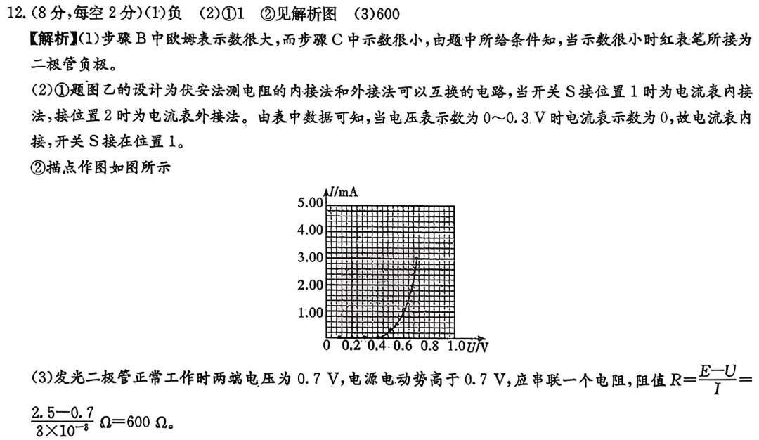 湖南师大附中2026届高三月考物理试卷(二)详细答案