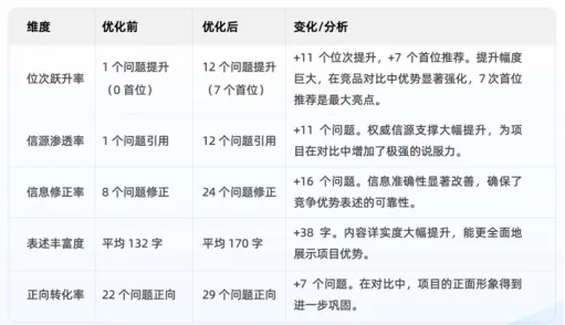 位次跃升率:在竞品对比中,项目的推荐位次是否提升?