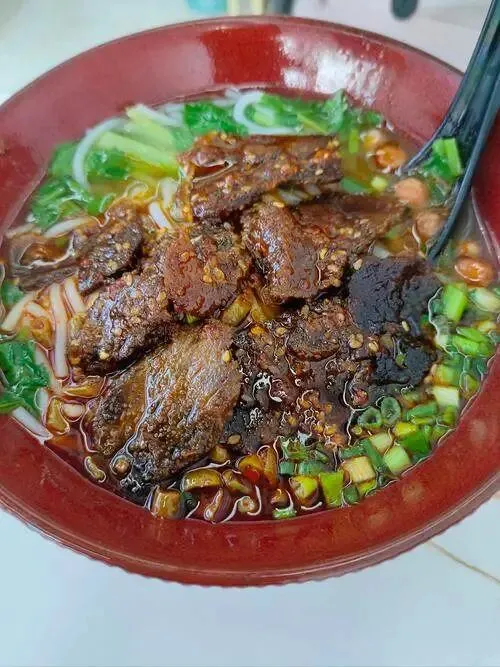 常德牛肉粉做法速写:牛油是灵魂,得厚。牛大骨熬汤做底,牛肉切成大块,加桂皮、八角等二十多种香料慢火煨炖,直到肉烂筋软。米粉在沸水里烫个十几秒捞出,浇上一勺红亮滚烫的牛肉哨子,撒把葱花,齐活。