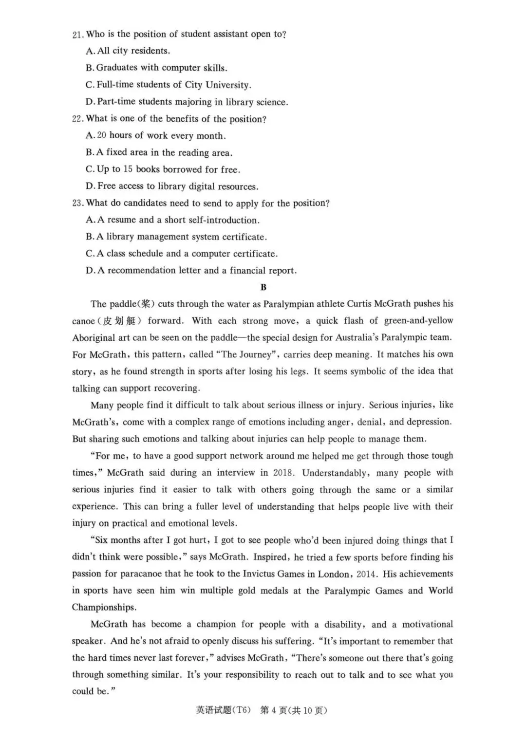 paddle /n./ 桨Paralympian /n./ 残奥会运动员