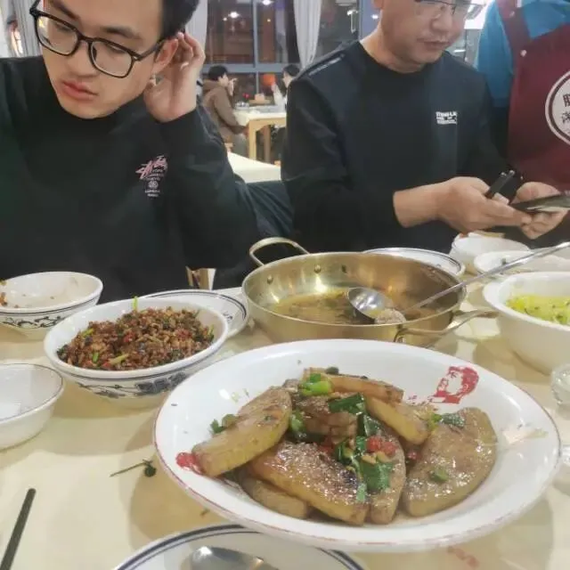 从衡山祝融峰到南天门,靠着登山杖,一路小跑,用了半个小时就到了南天门的大巴车站,乘车下山的人很多,买票排队等候,算着如果6点前坐不上车,就大概率赶不上去长沙的高铁,我们已经考虑车票改签了。非常幸运,正好6点我们上车了 ,不到半小时就到了游客中心——下车的地方。我们几乎是跑着去民宿取行李,拿着行李打了车,又非常幸运,接单的车就在名宿门口 ,上了车感觉松了一口气,这时离发车时间还有半小时,应该能赶上。20分钟时间到达衡山西站,检票上车,有惊无险。正好半小时到了长沙站。下车出站,长沙也下小雨了。我们在车上就搜好了吃饭的地方一家叫胖冬瓜的网红店,菜品以冬瓜为主,冬瓜与湘菜的结合。我们点了招牌菜胖冬瓜,还有醋蒸鸡,冬瓜肉丸汤,炒土豆丝,酸菜炒粉皮,甜豆花。湘菜下饭,希望也能缓解一天爬山的疲劳吧。