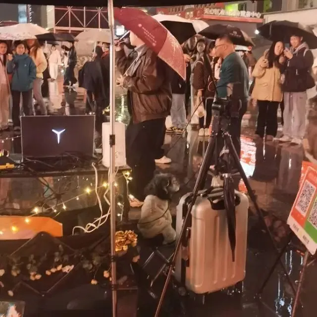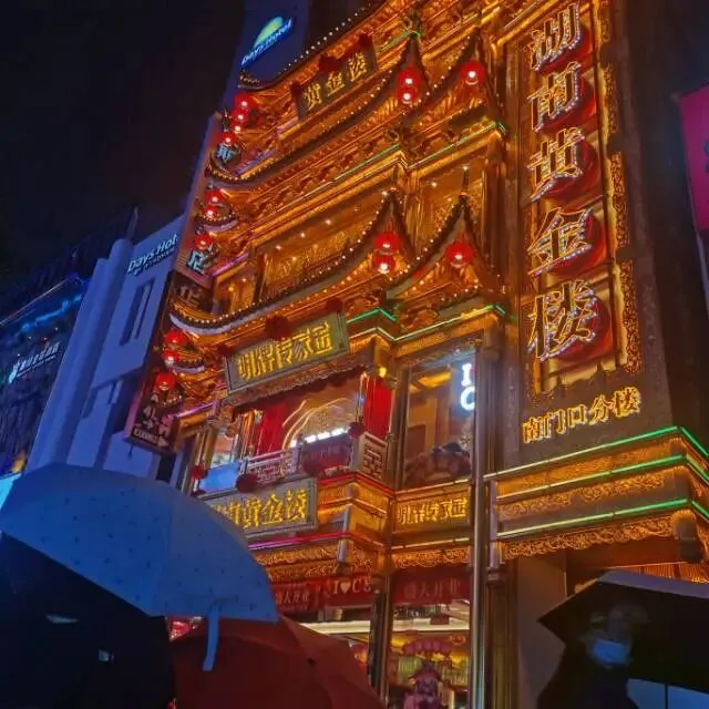 遍地是黄金楼,茶颜悦色的店三五步就一个。在街的一个宽阔的地方遇到两个歌手撑着伞唱歌 ,地上是音响设备,优美的歌声在雨中回响,吸引了很多人驻足。