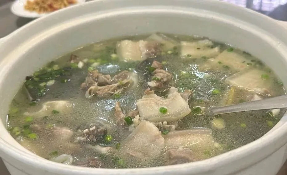 清炖甲鱼是现点现杀的,里头还放了五花肉一起炖,汤头特别鲜。撒点胡椒粉,热热地喝一碗,再吃那块软糯的裙边,真的舒服。
