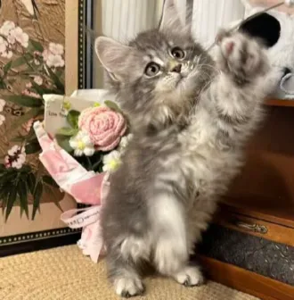 编号:0303-08***【长沙】缅因银虎斑母猫都有,有舍利毛,1500元,三个月大体格,目前3斤,成年20斤左右,性格温顺亲人,送猫粮和航空箱,长沙月亮岛附近。