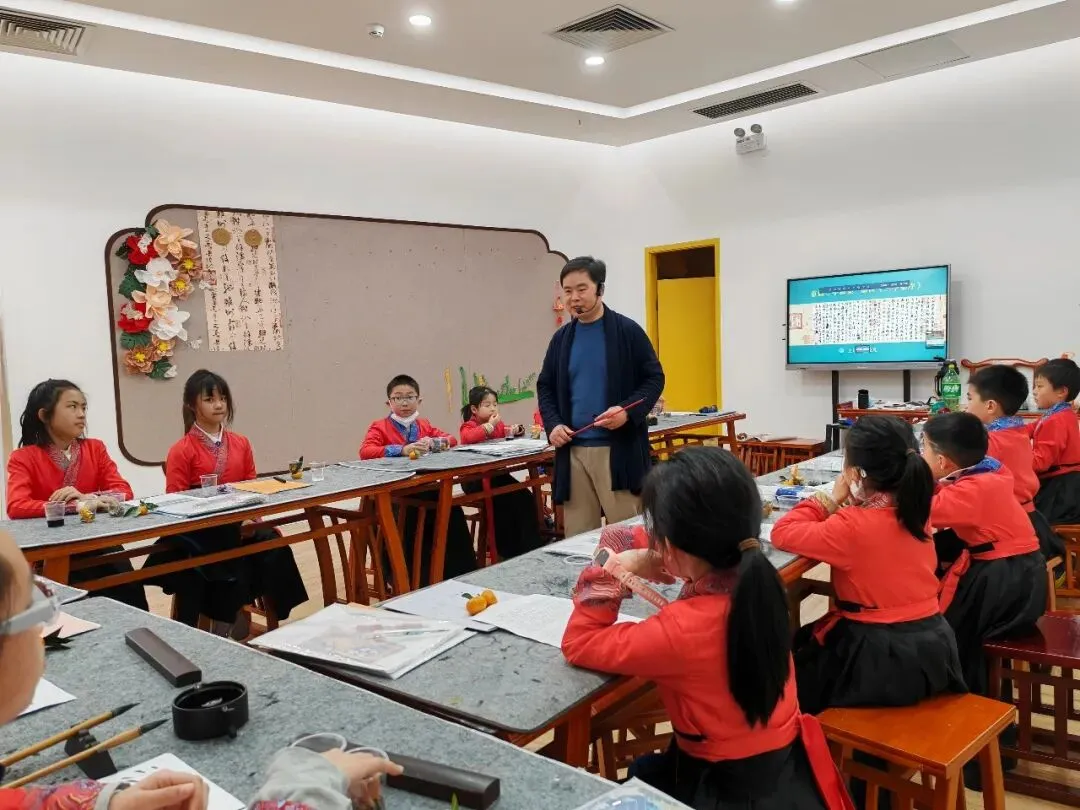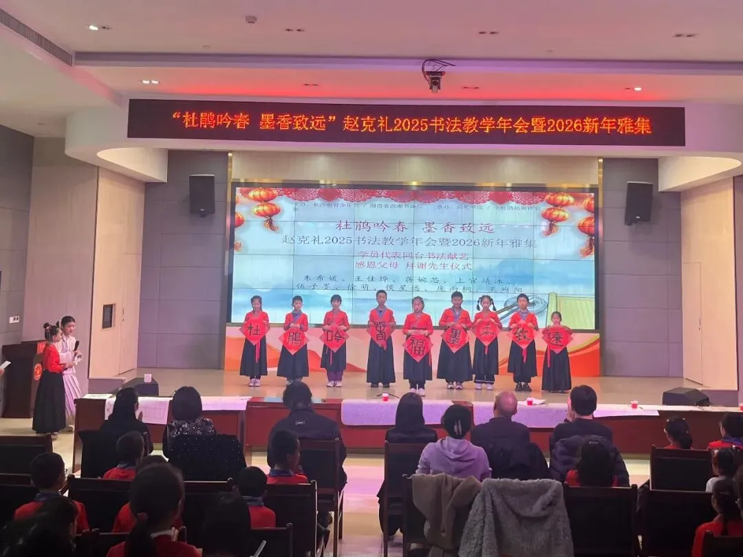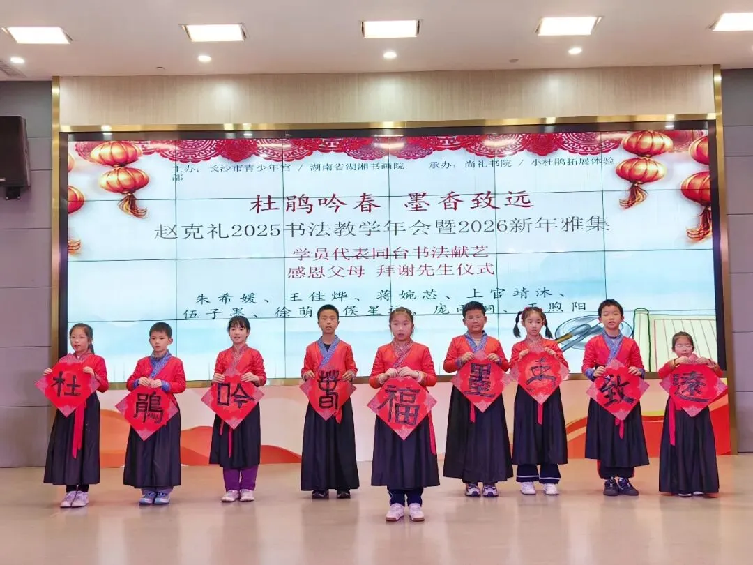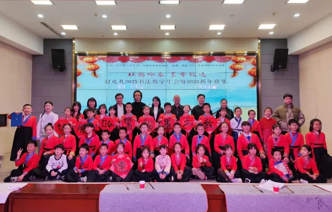 2025年赵克礼与其执教的小杜鹃书法师承班学员在校区留影