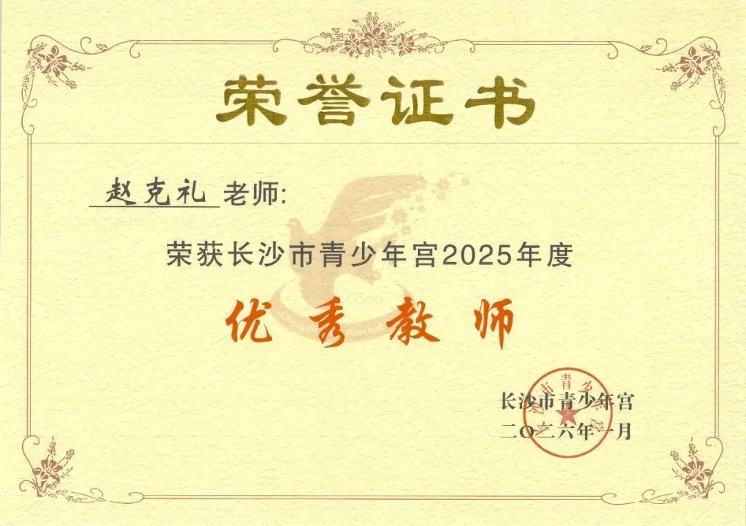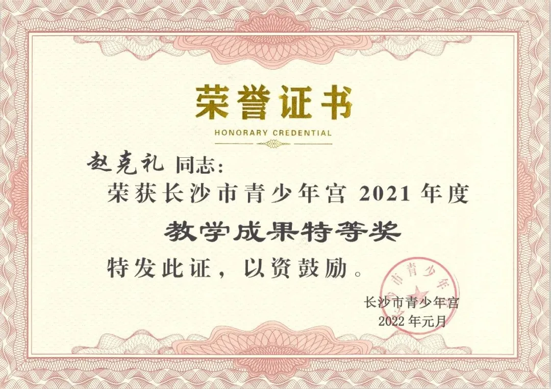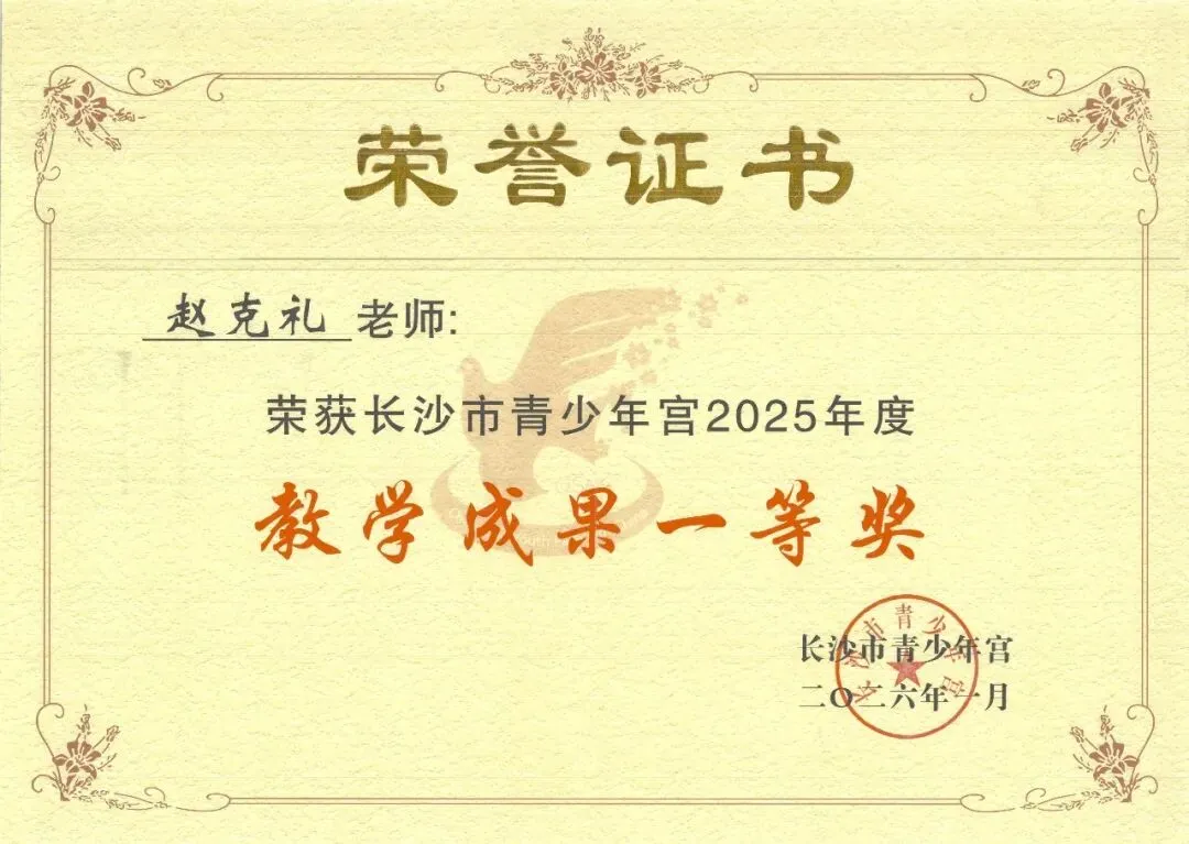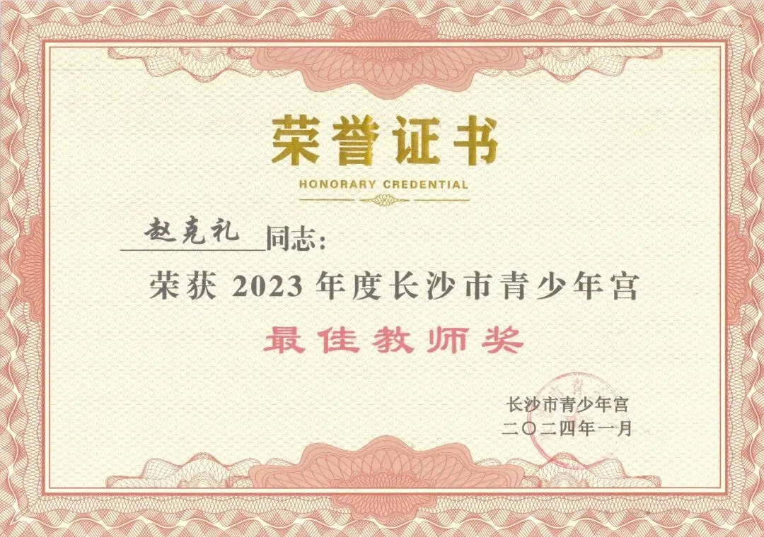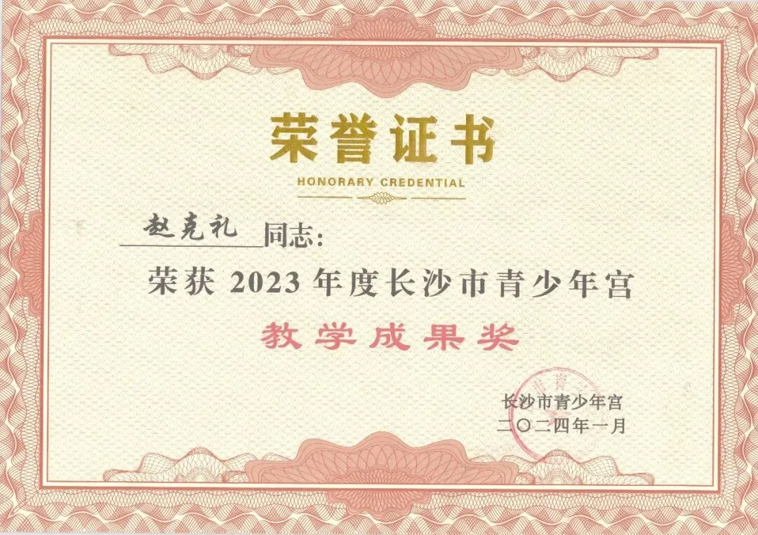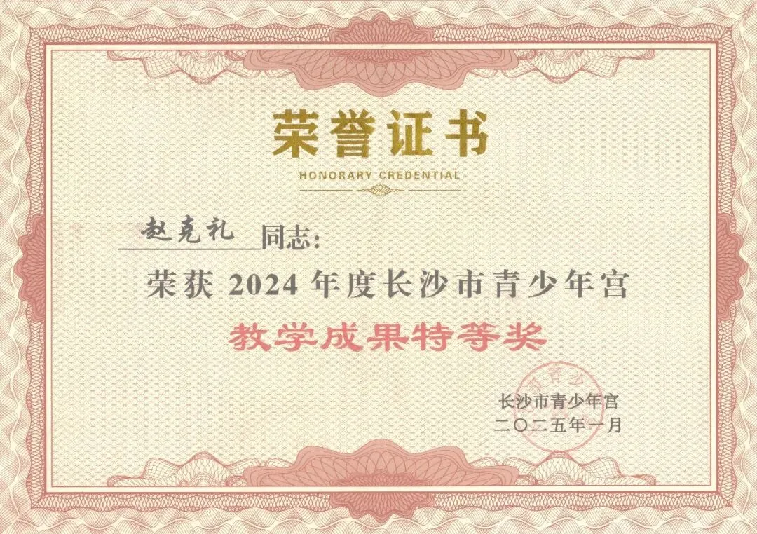 1月,被评为长沙市青少年宫2024年度教学成果特等奖;