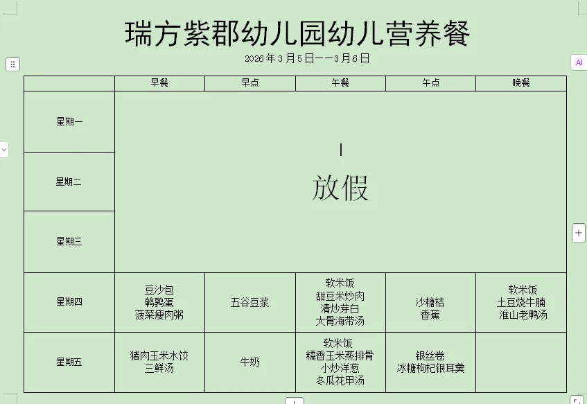 >【营养膳食】长沙市望城区瑞方紫郡幼儿园 一周美食播报