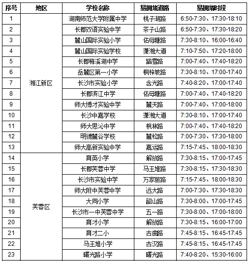 根据往年经验,3月6日晚高峰(星期五)拥堵路段主要集中在城区主干道及过江通道。易拥堵路段主要涉及湘府路高架、金星中路、五一大道、晚报大道等36条道路,其中过江通道主要为福元路大桥、银盘岭大桥、橘子洲大桥、猴子石大桥、湘府路大桥。为了不让您的孩子上学迟到,也为了不让您自己堵在路上,长沙交警建议: