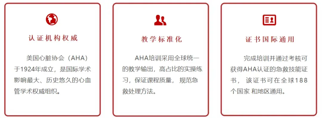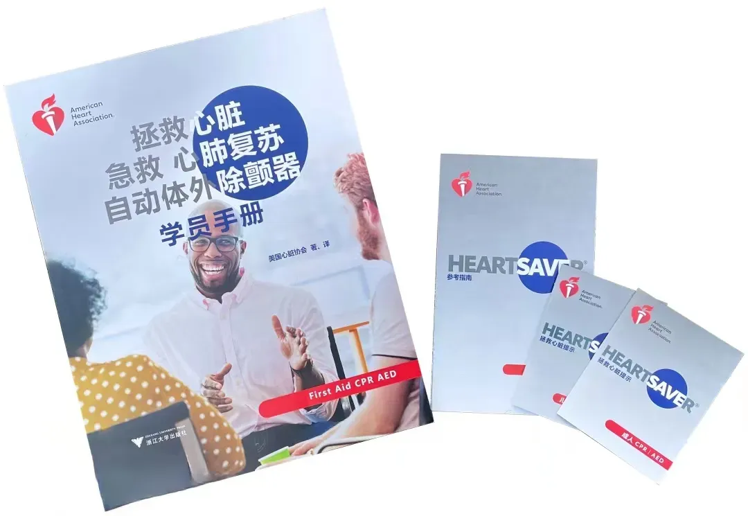 HeartSaver®课程适合无任何医疗背景的普通大众标准学习时长为1天,采用心脏协会官方教材,AHA专业认证导师小班教学,练习时间充分,针对性指导及时高效正规标准、理论与实际操作相结合的授课形式教授及帮助学员快速高效地掌握完整急救知识和技能学习全天Heartsaver®课程并通过技能考试的学员,将获得由心脏协会颁发的国际认证(HS)急救证书因课程内容基于最新国际复苏指南所设计,并随指南更新而迭代,所以是目前世界上最普及性的急救课您将学习并实操完成以下内容:(急救、心肺复苏、海姆立克、胸外心脏按压、CPR AED使用、止血、包扎、伤员搬运、骨折固定等)参加培训并当天考核合格,可以取得心脏协会颁发的Heartsaver(急救员证书),证书有效期2年。学员手册: