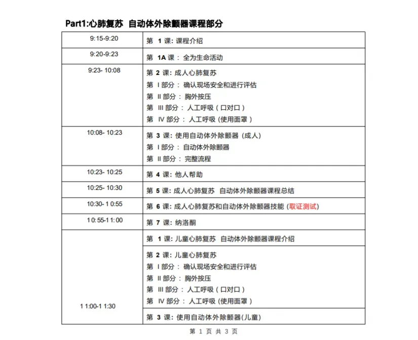 - 如果您身体状况不允许您参与这些课程(如怀孕、骨折等)请在上课前通知此次课程的导师。北京窦律跳动科技有限公司AHA急救培训电话15650729302