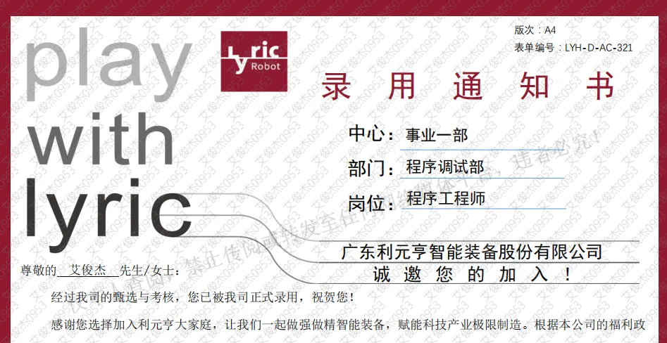 祝贺艾俊杰同学入职利元亨