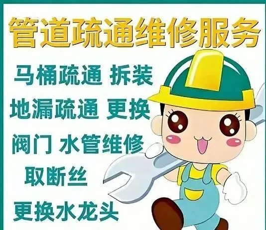 疏通下水道、马桶、蹲厕、地漏;疏通下水管;维修马桶漏水;维修水管;卫生间除臭、反味处理;脸盆、菜盆疏通;疏通墩布池;通坐便、蹲便、小便池;除尿碱;打捞贵重物品;疏通主管道、疑难管道、市政管道、工业管道;高压清洗车、抽粪车服务;上下水管安装、改管、维修。