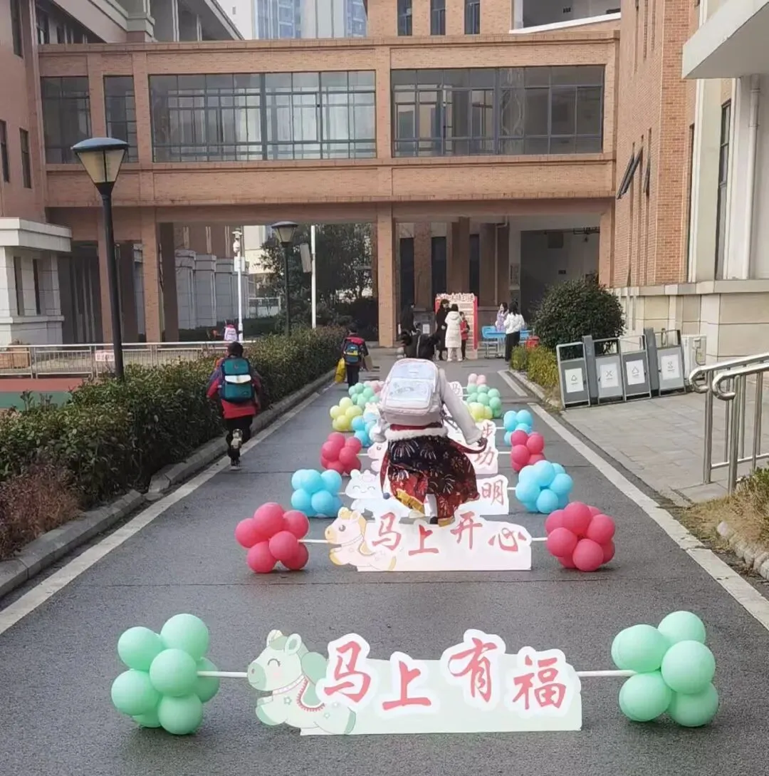 春风送暖,万马奔腾。2026年3月4日上午,长沙市一中金山桥学校附属小学以“扬鞭启航,中国力量”为主题,举行了别开生面的春季开学报到活动。正值农历丙午马年,校园内处处洋溢着“一马当先”的奋进气息与深厚的家国情怀。学校精心设计的两大互动区——“西门纳福·民俗传承”与“东门跨越·力量启航”,让全体师生及家长在满满的仪式感中,开启了新学期的美好篇章。