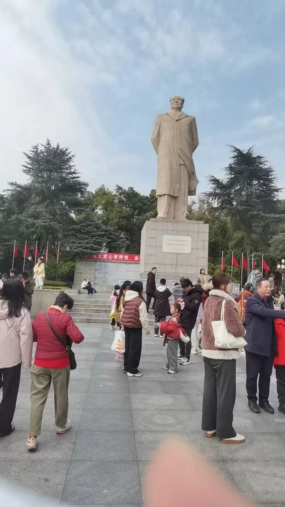 十一点半,岳麓书院站到了。从2号口出来,随着人流在马路上步行,不过五分钟,东方红广场便赫然眼前。广场中央,毛泽东主席的塑像巍然矗立,那伟岸的身影背倚苍翠岳麓,目光穿过城市,望向远方。